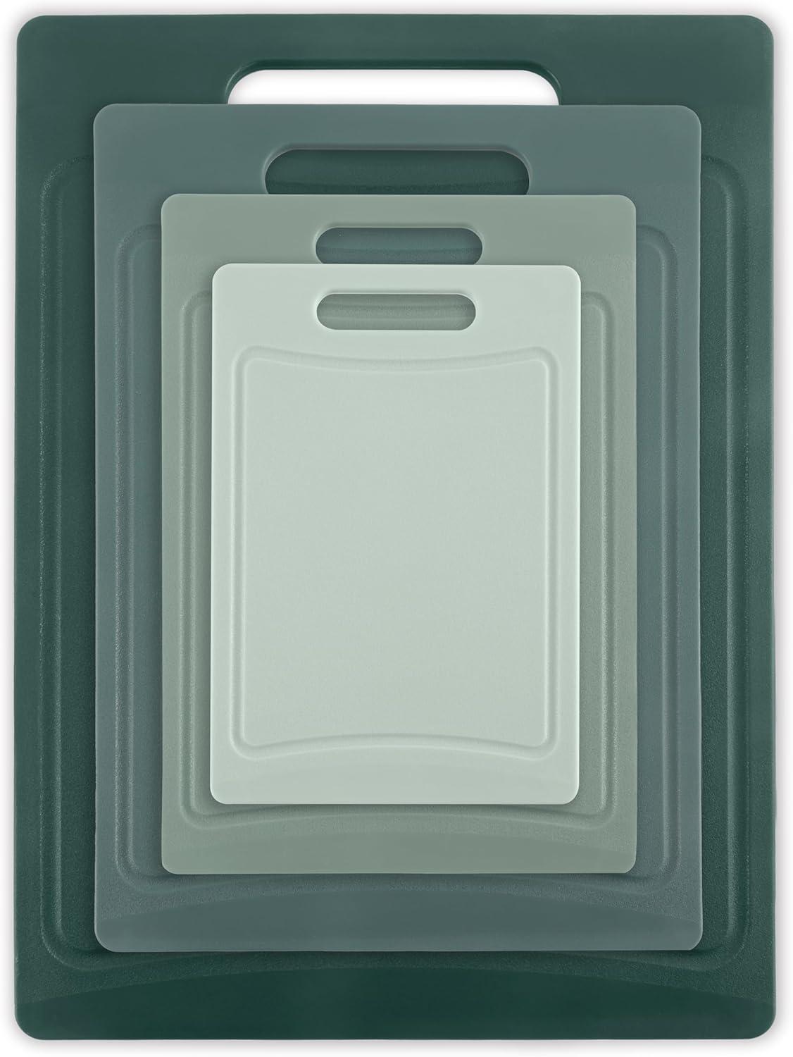 DIFFERENT SIZE OPTIONS – From slicing meat to chopping grapes, this plastic cutting board set comes with a the great size board for your kitchen needs. The largest measures: 17″, large: 14″, medium: 12″, and small: 9.5″.
