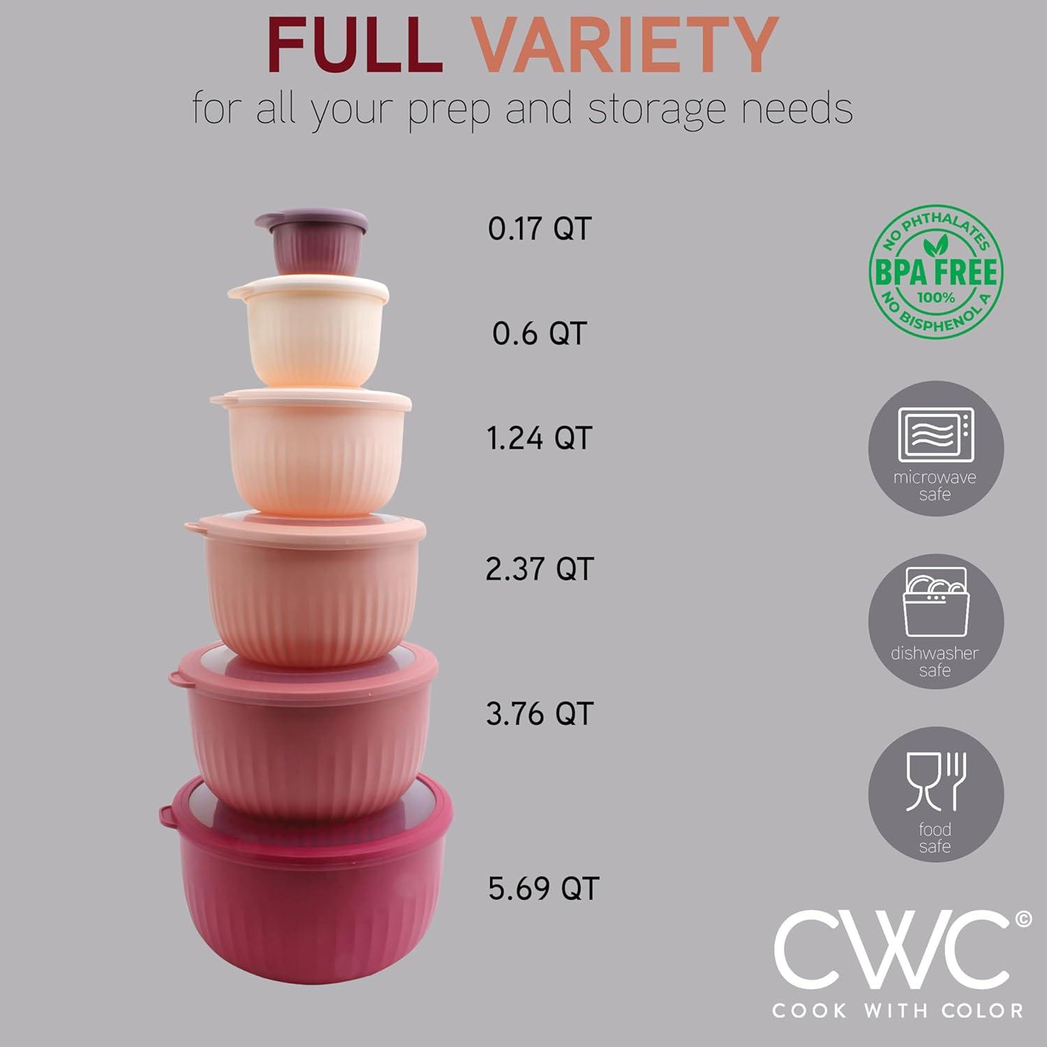 COOK WITH COLOR Prep Bowls with Lids- Wide and Deep Nesting Plastic Small Mixing Bowl Set with Lids, 12 Piece Set – Wide Bowls, Multicolor(Rose)