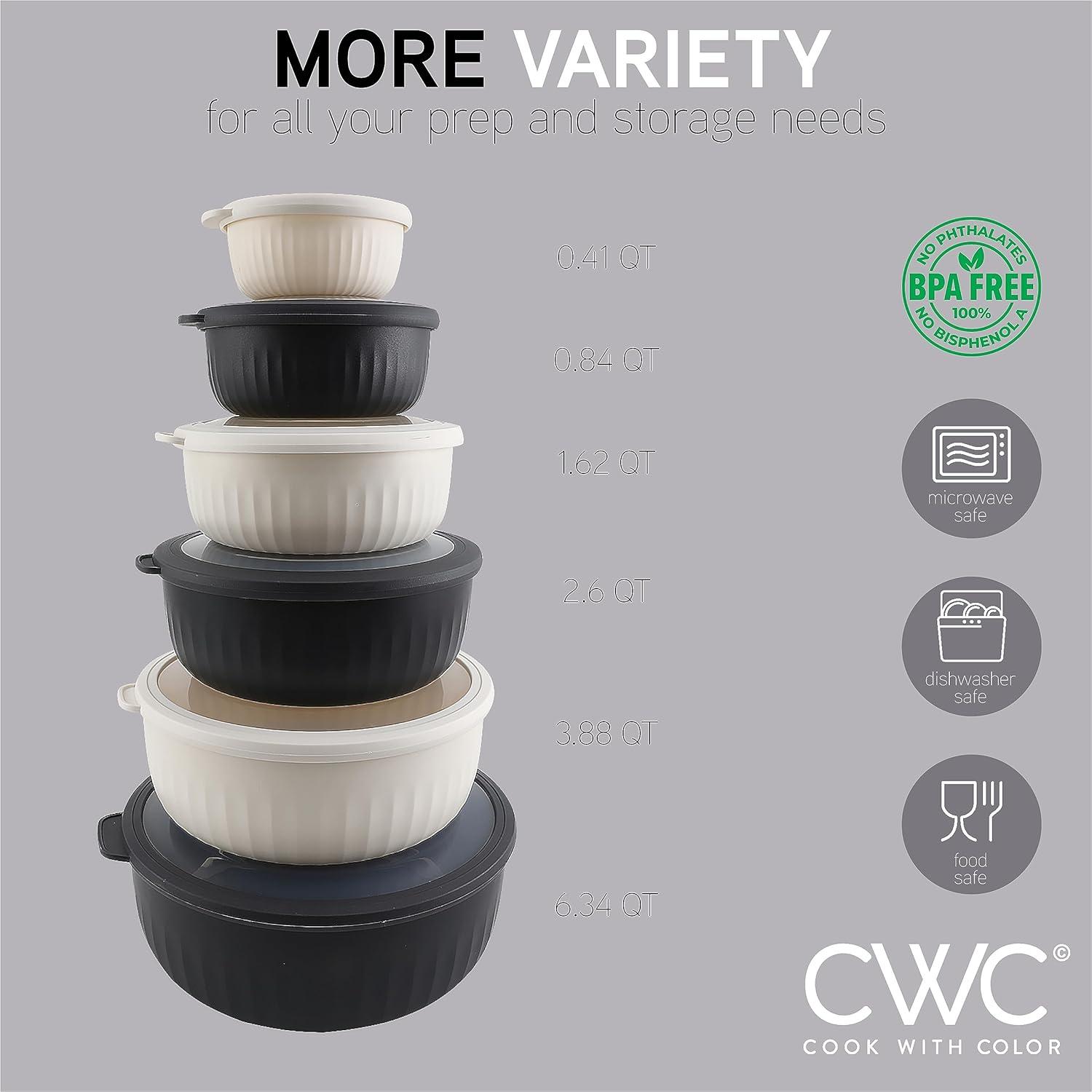 Cook with Color 12 piece plastic mixing bowl set – non slip bowls with lids; easy to clean, sturdy mixing bowls.