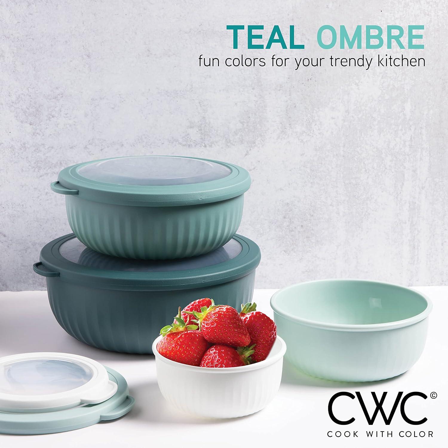 COOK WITH COLOR Prep Bowls with Lids- Wide and Deep Nesting Plastic Small Mixing Bowl Set with Lids, 12 Piece Set – Wide Bowls, Multicolor(Teal)