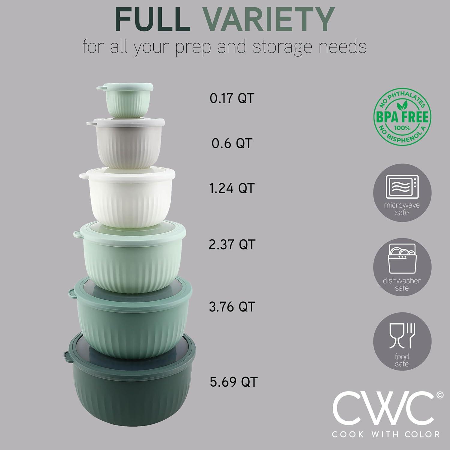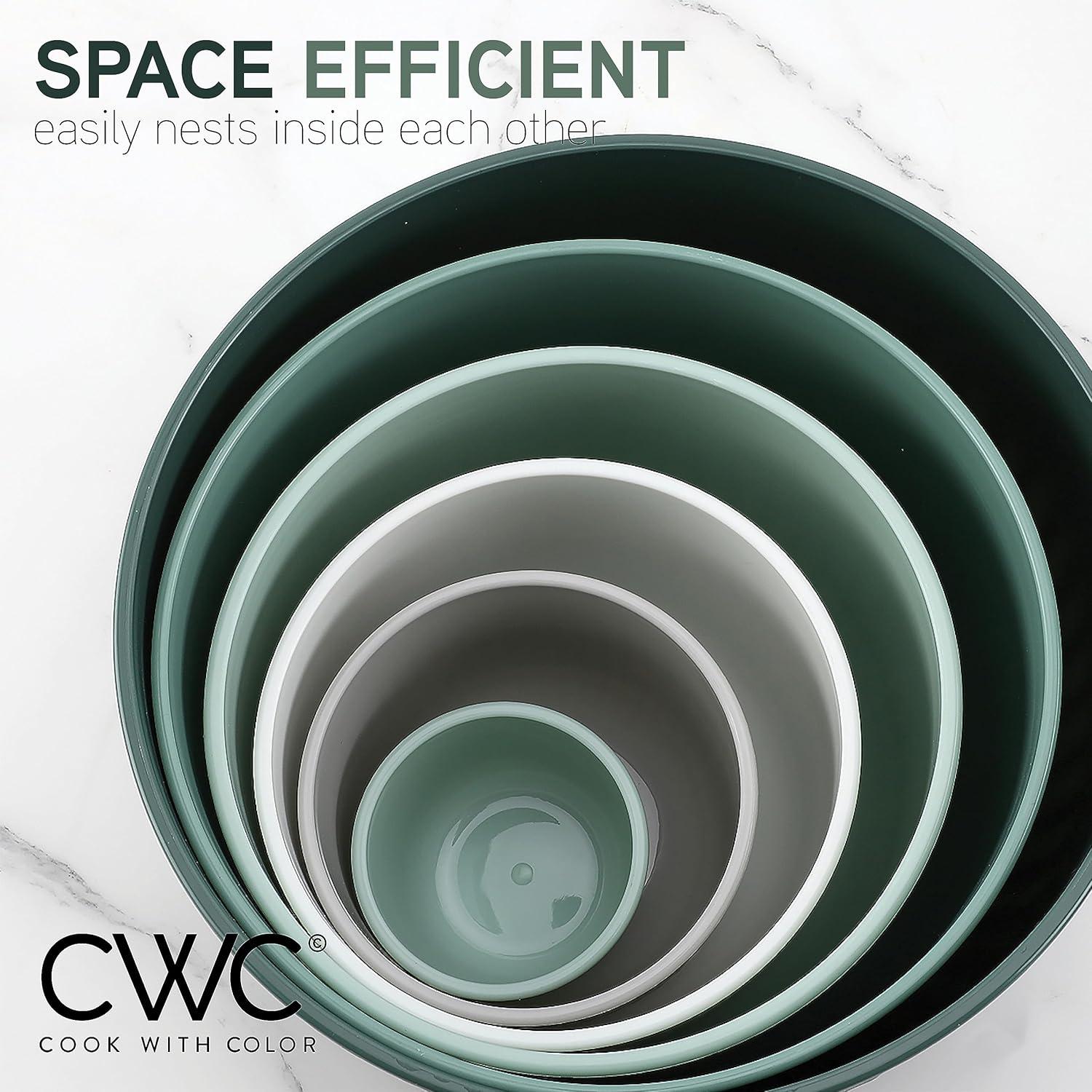 COOK WITH COLOR Prep Bowls with Lids- Wide and Deep Nesting Plastic Small Mixing Bowl Set with Lids, 8 Piece Set – Wide Bowls, Gray(Sage)