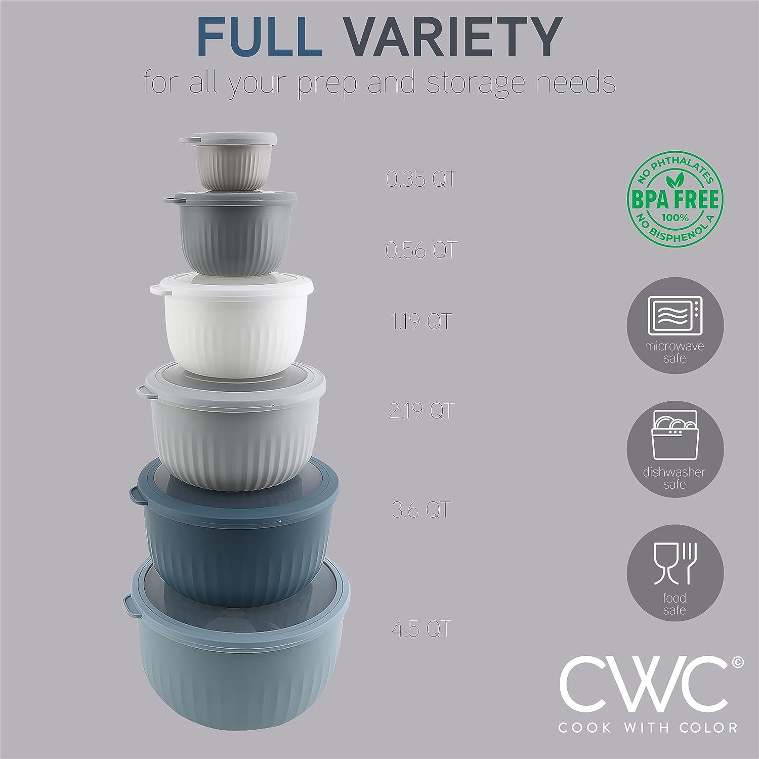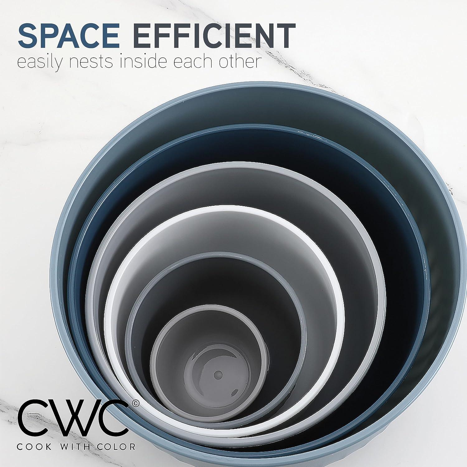 COOK WITH COLOR Prep Bowls with Lids- Wide and Deep Nesting Plastic Small Mixing Bowl Set with Lids, 8 Piece Set – Wide Bowls, Speckled White(Blue/Grey)
