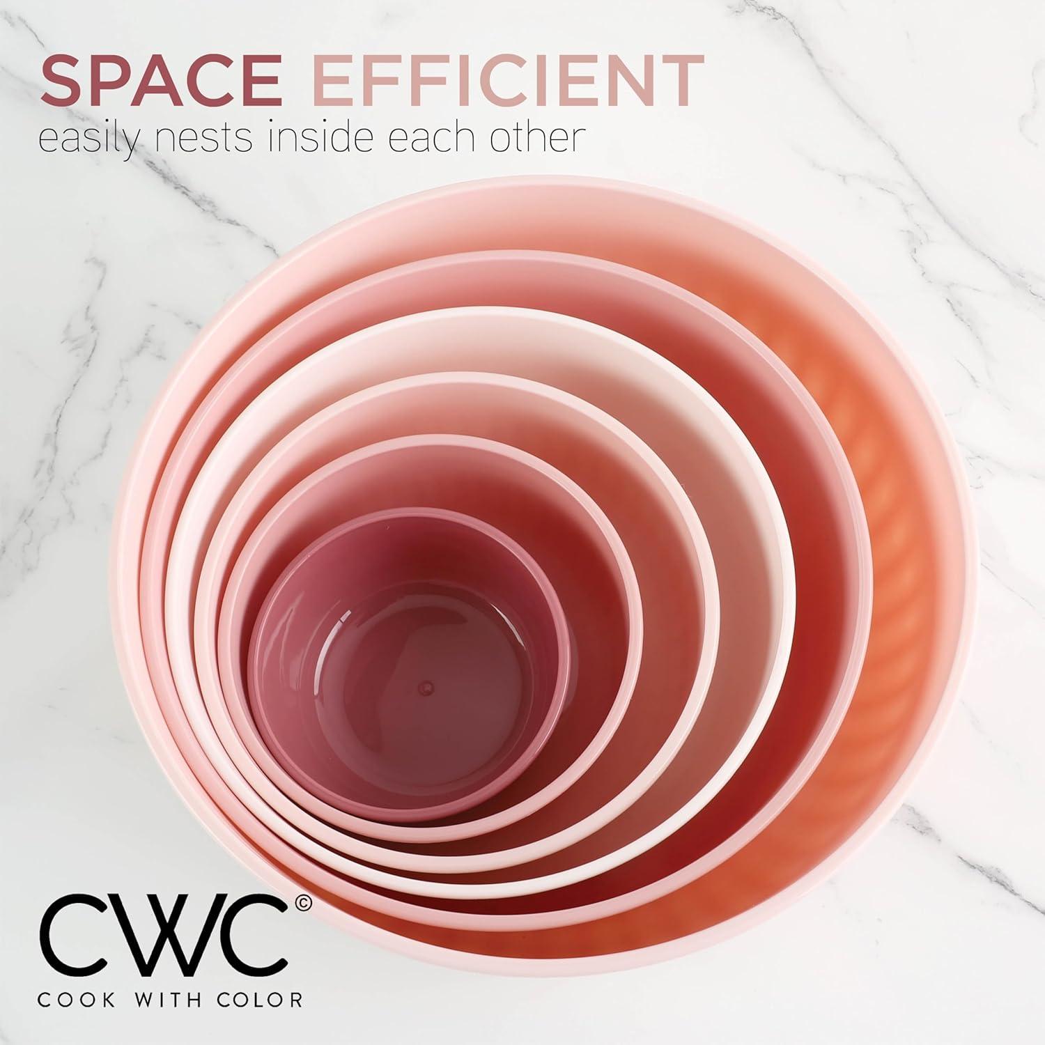 COOK WITH COLOR Prep Bowls with Lids- Wide and Deep Nesting Plastic Small Mixing Bowl Set with Lids, 8 Piece Set – Wide Bowls, Speckled White(Pink)