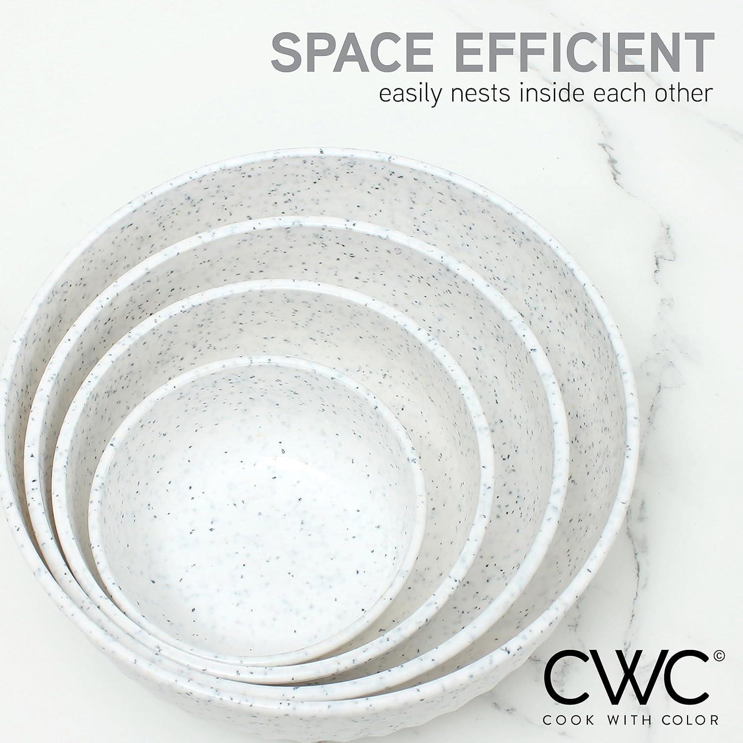 COOK WITH COLOR Prep Bowls with Lids- Wide and Deep Nesting Plastic Small Mixing Bowl Set with Lids, 8 Piece Set – Wide Bowls, Speckled White(Speckled White)