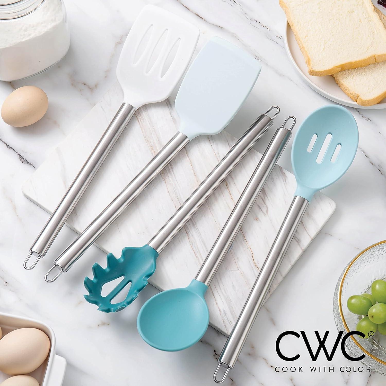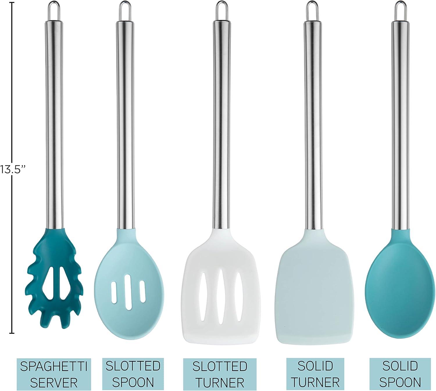 COOK WITH COLOR Silicone Cooking Utensils, Kitchen Utensil Set, Easy to Clean Silicone Kitchen Utensils, Cooking Utensils for Nonstick Cookware, Kitchen Gadgets Set, 5 Pieces, Blue Ombre(Teal)