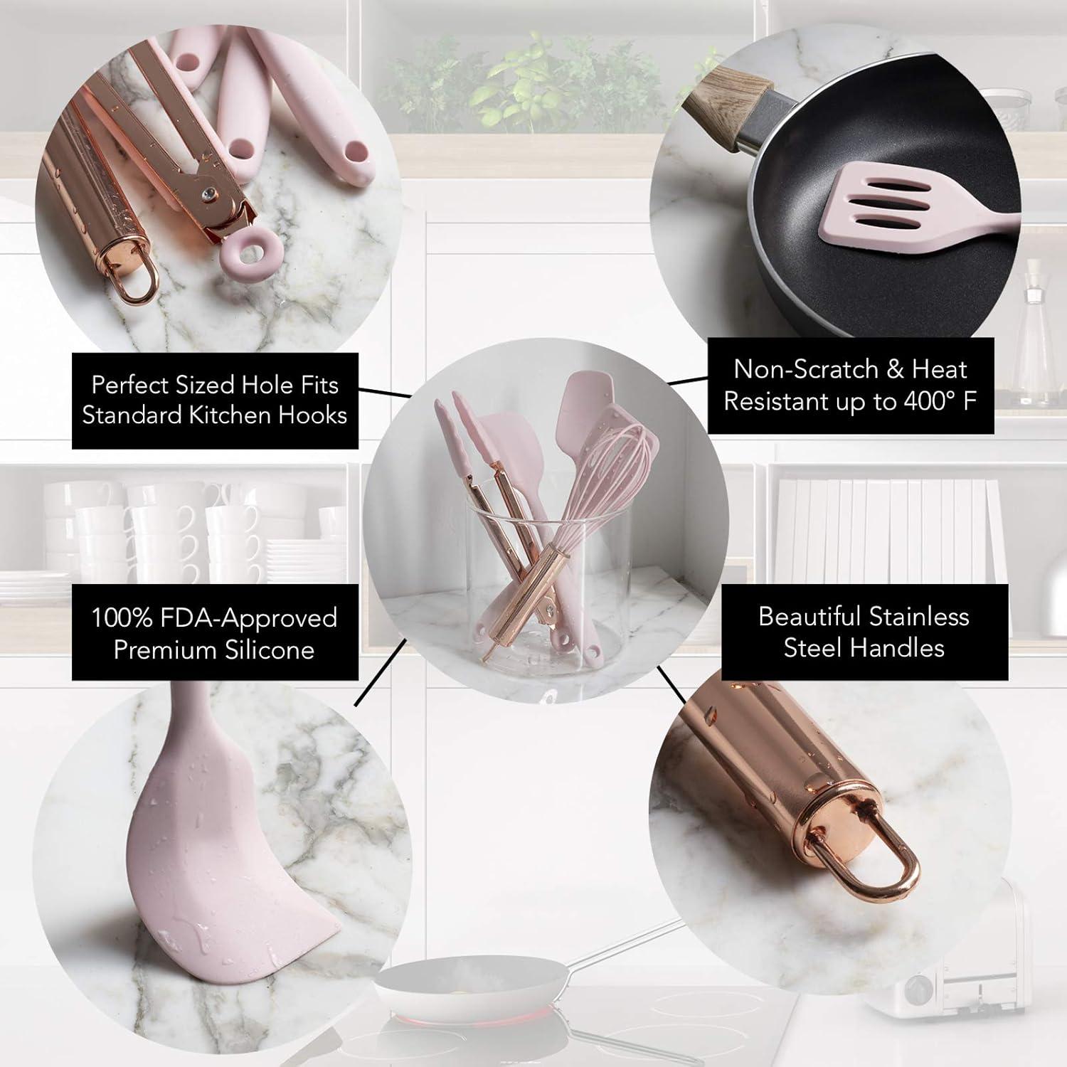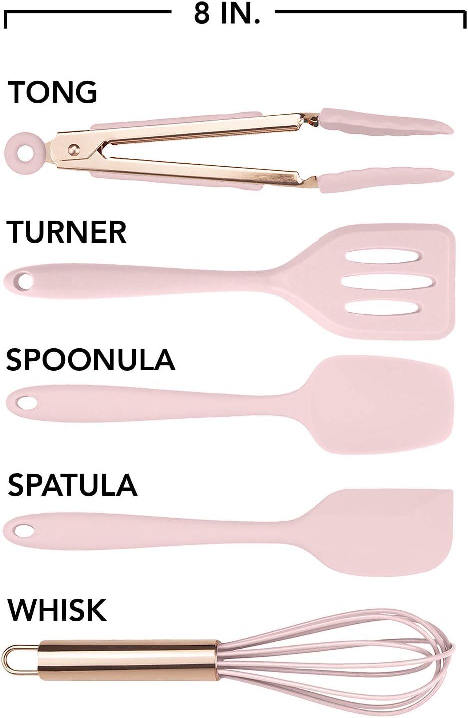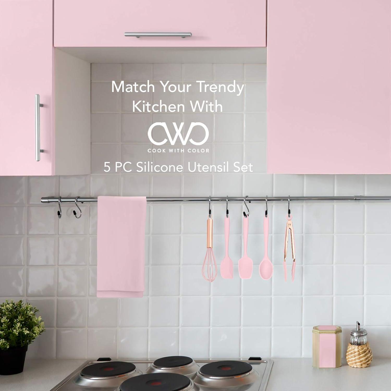 COOK WITH COLOR Silicone Cooking Utensils, Kitchen Utensil Set, Easy to Clean Silicone Kitchen Utensils, Cooking Utensils for Nonstick Cookware, Kitchen Gadgets Set, Mini, Aqua(Pink)