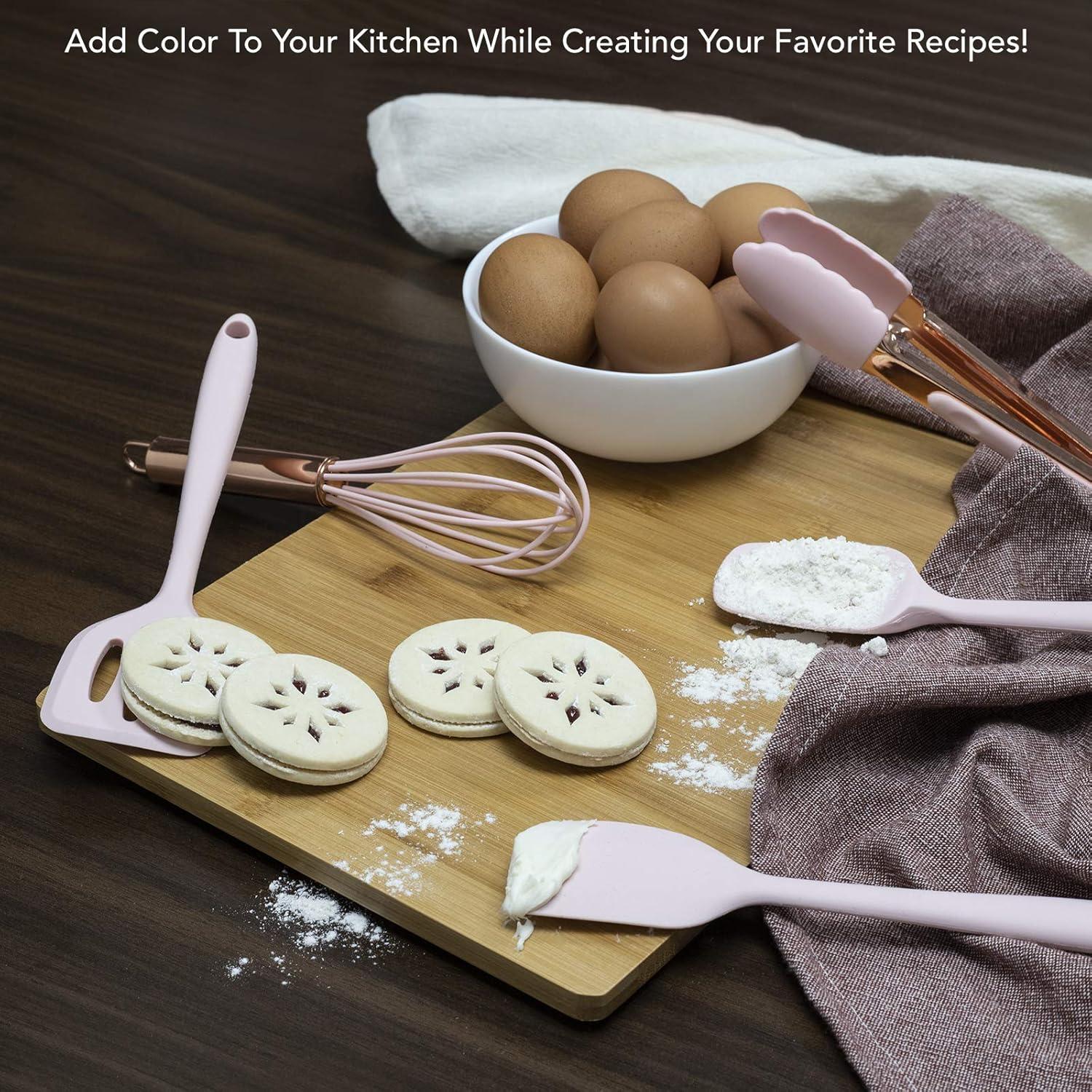 REFRESHING AND STYLISH – Designed in aqua and a rose gold metallic tone, this set of mini silicon kitchen tools has an up to date, trendy look that is madly in line with the current styles and trends. Add a splash of color and funk to your kitchen and hang from the rings on each utensil. Cook, bake, grill and serve with fun and fashion at the same time. great for an impressive present as well.