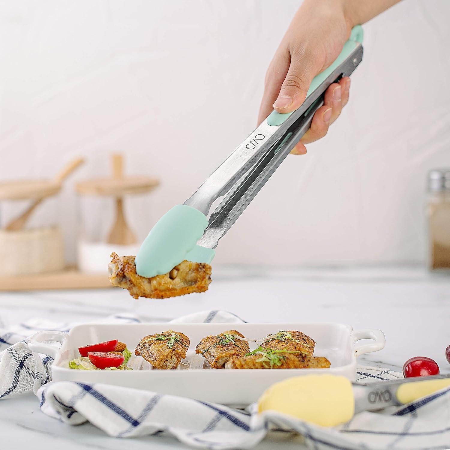 Let the grilling begin with these high performance, trendy food tongs; set includes a 9” tong and 12” tong to accommodate your various cooking needs; outdoors and at home as well. Soft nonslip good grip handles and scalloped silicone heads assures you have complete control while cooking.