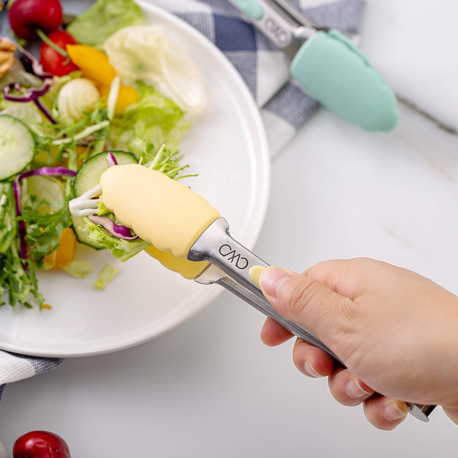 COOK WITH COLOR Stainless Steel Silicone Tipped Kitchen & BBQ Tongs Set, 2 Pc Tongs, Blue(Mint and Yellow)