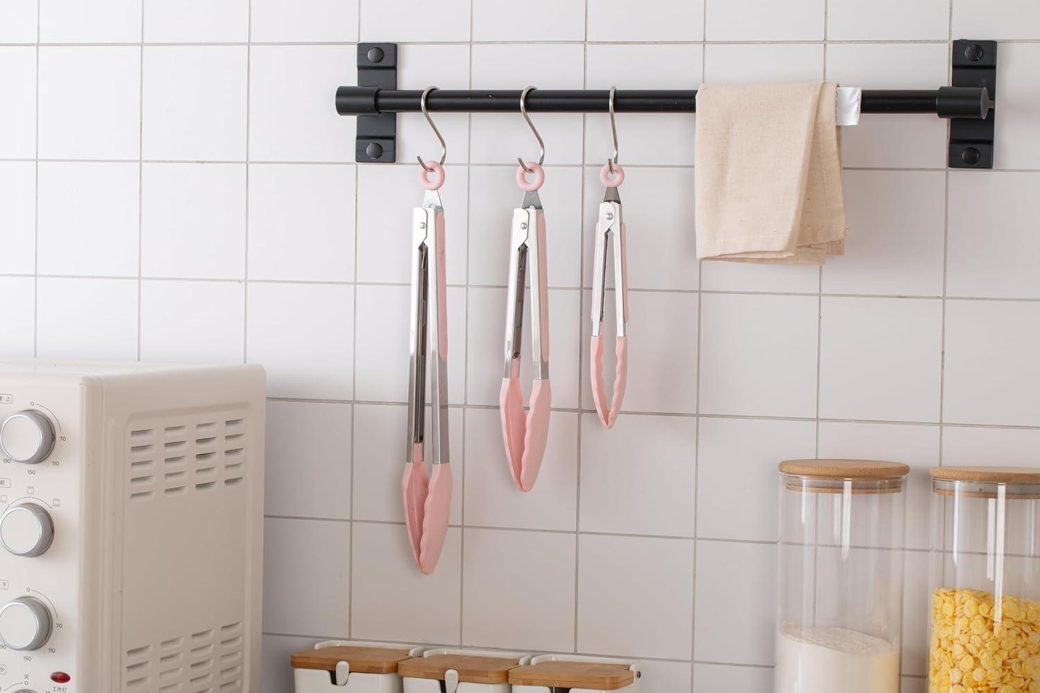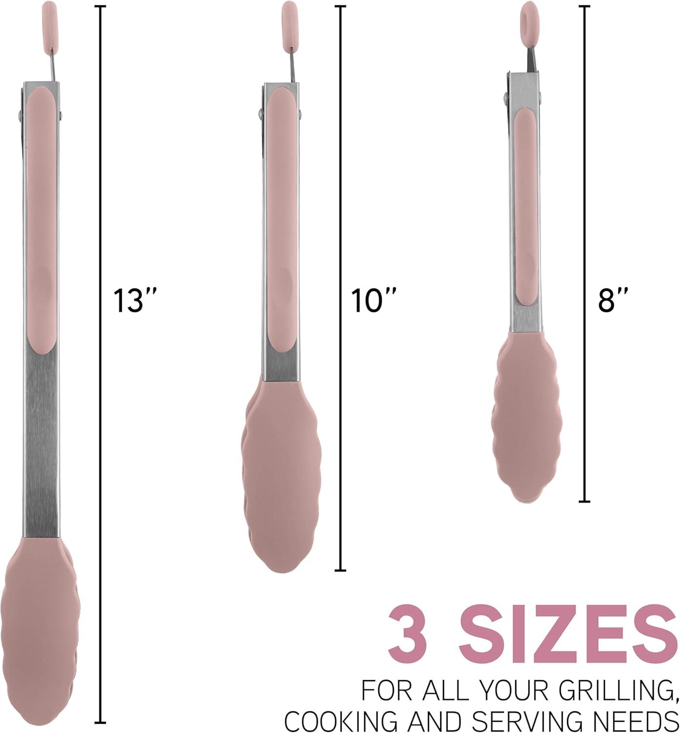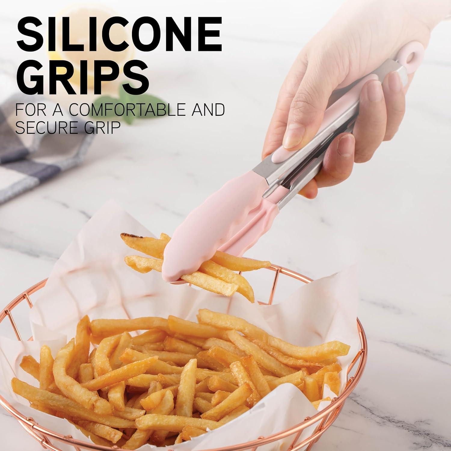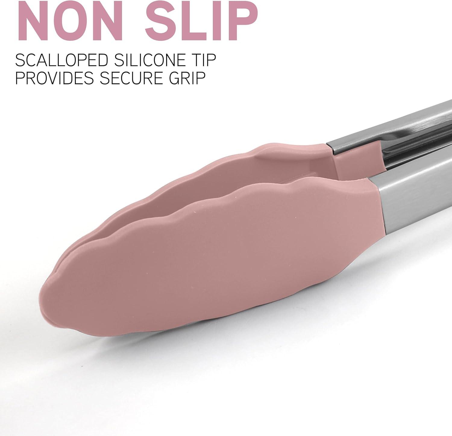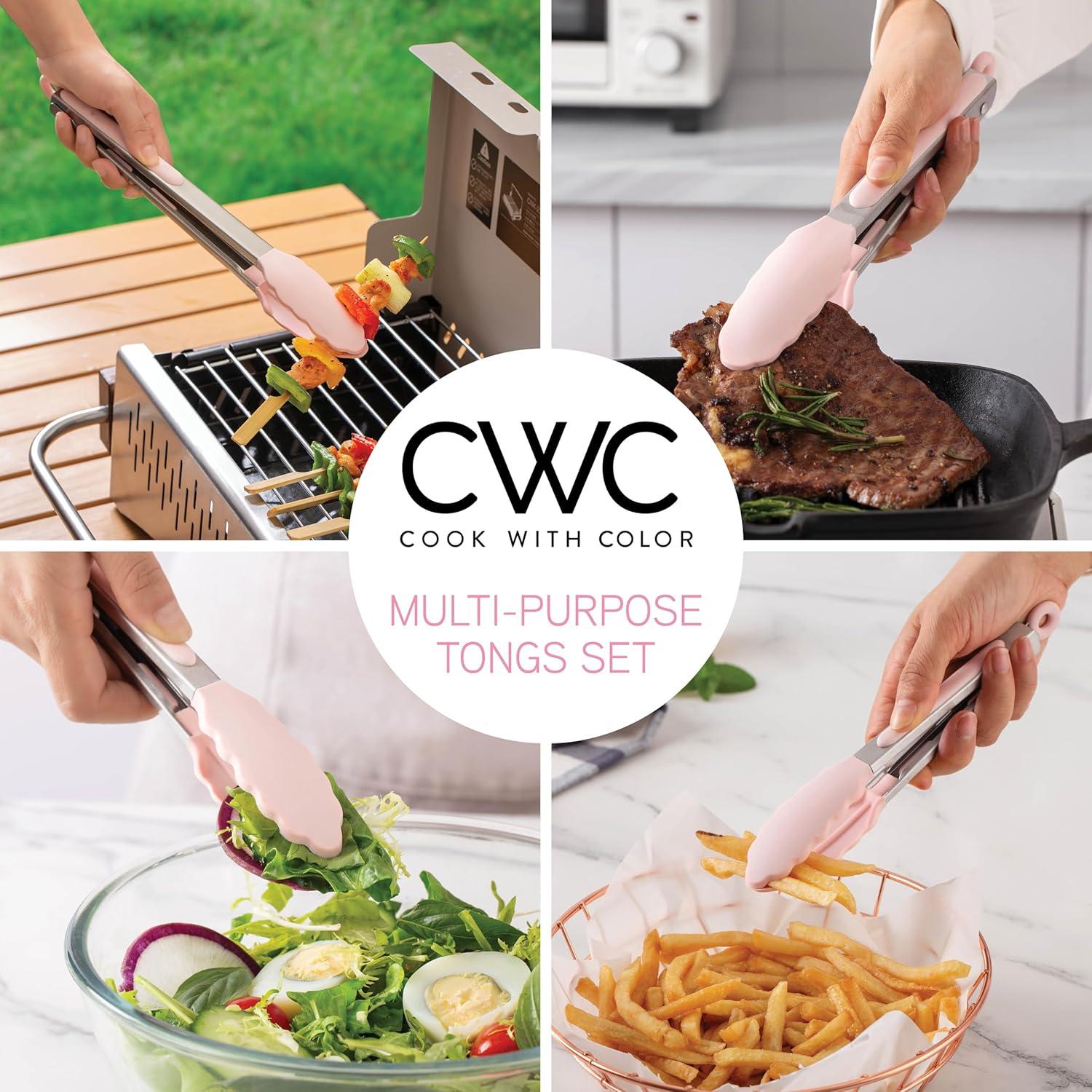COOK WITH COLOR Stainless Steel Silicone Tipped Kitchen & BBQ Tongs Set, 2 Pc Tongs, Blue(Pink)