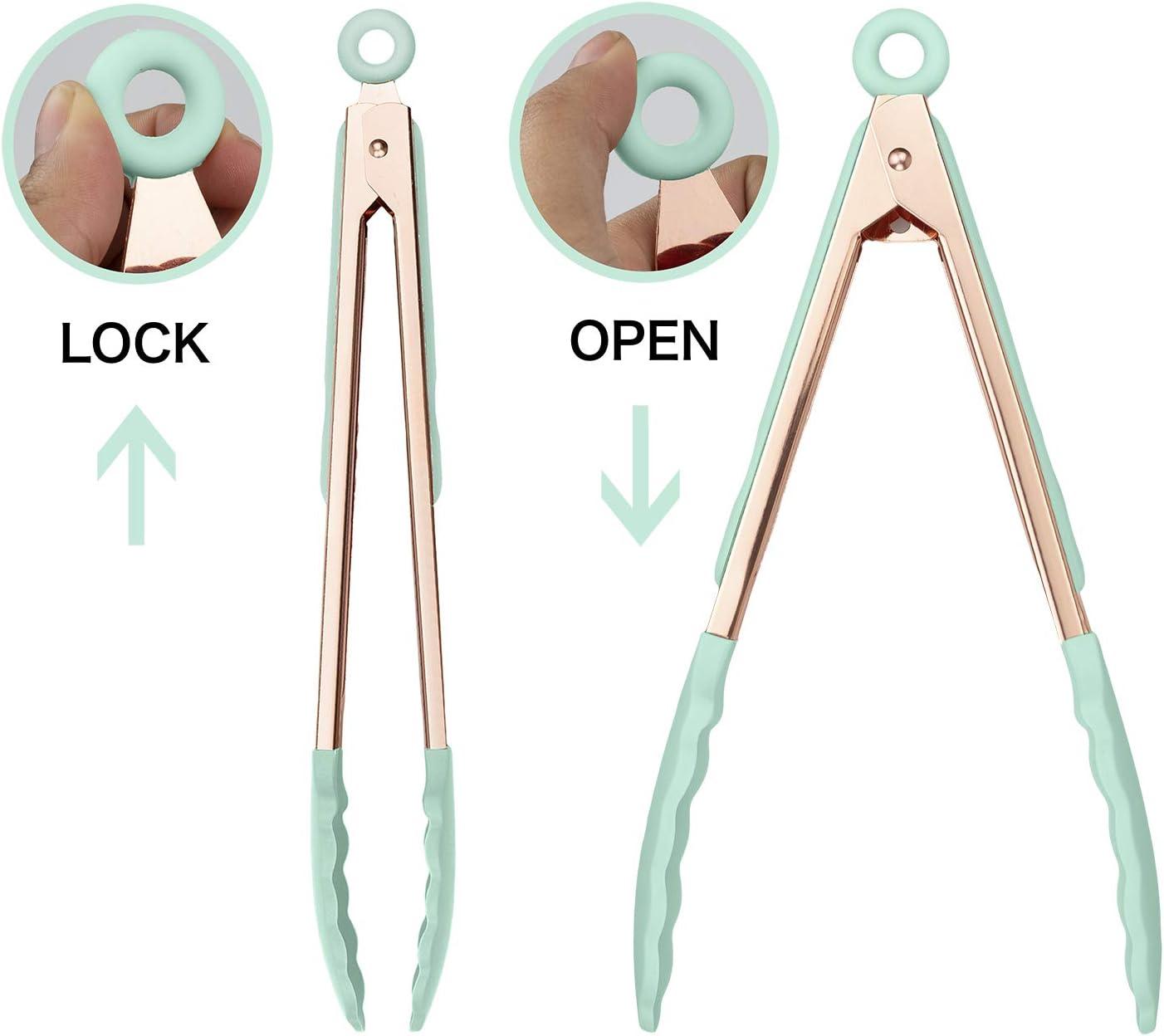 COOK WITH COLOR Stainless Steel Silicone Tipped Kitchen & BBQ Tongs Set, 2 Pc Tongs, Blue(Rose Gold and Mint)