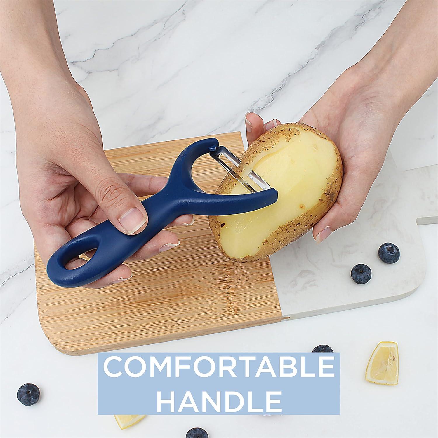 Social Chef 2-Piece Vegetable Peeler Set- Set of 2 Stainless Steel Blade Vegetable Peelers Set – Y Peeler and Swivel Peeler for Peeling Potatoes, Vegetables and Fruits (Navy)(Navy)