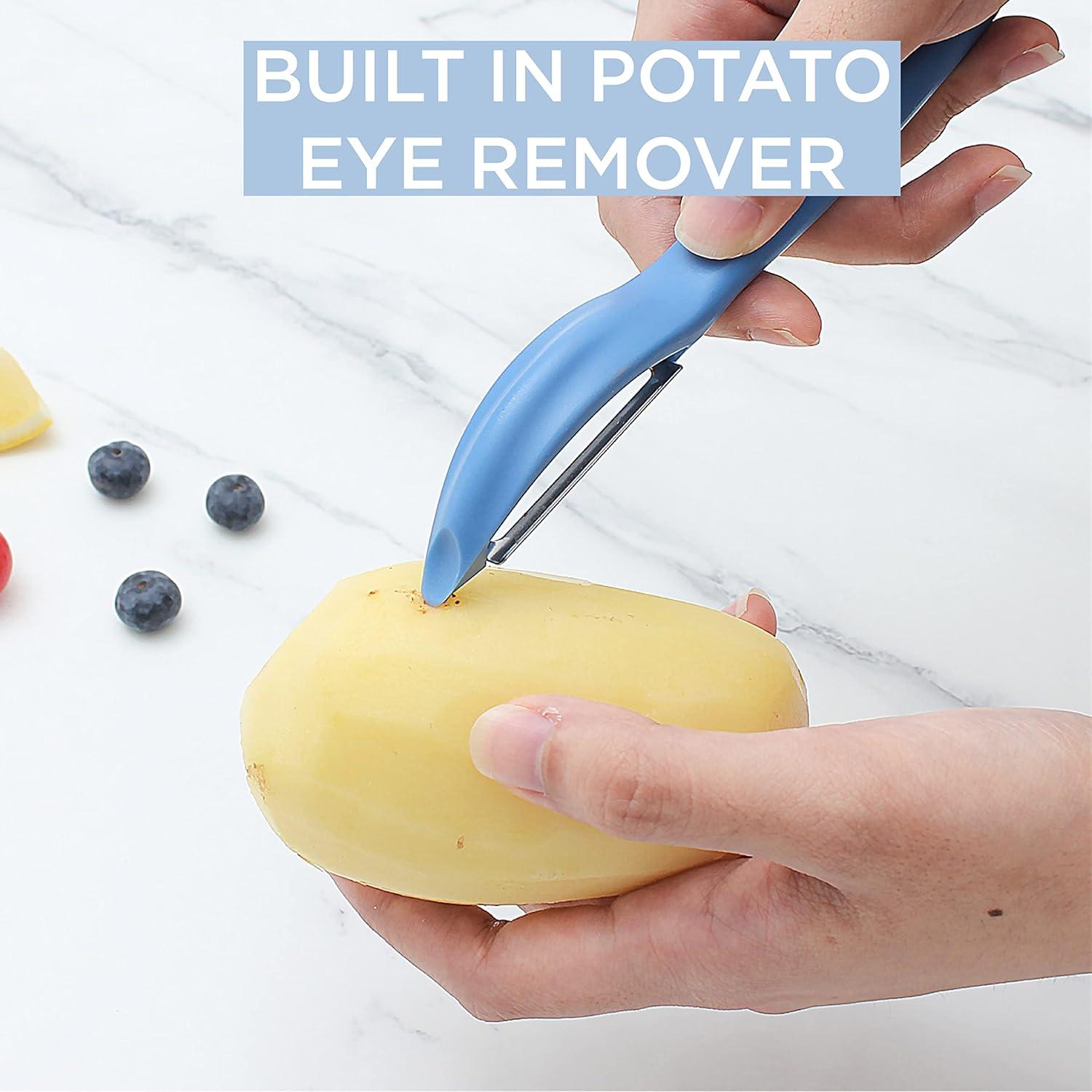 Two Designs for All Peeling Needs – This Y peeler for kitchen peeling along with the swivel style carrot peeler, will give you the great set for all your peeling needs. Use it as a vegetable peeler for butternut squash or use for simple peeling like cucumbers and carrots, this set will have your meals ready in a snap. The built in potato eye remover ensures you don't need another kitchen tool while preparing your veggies.