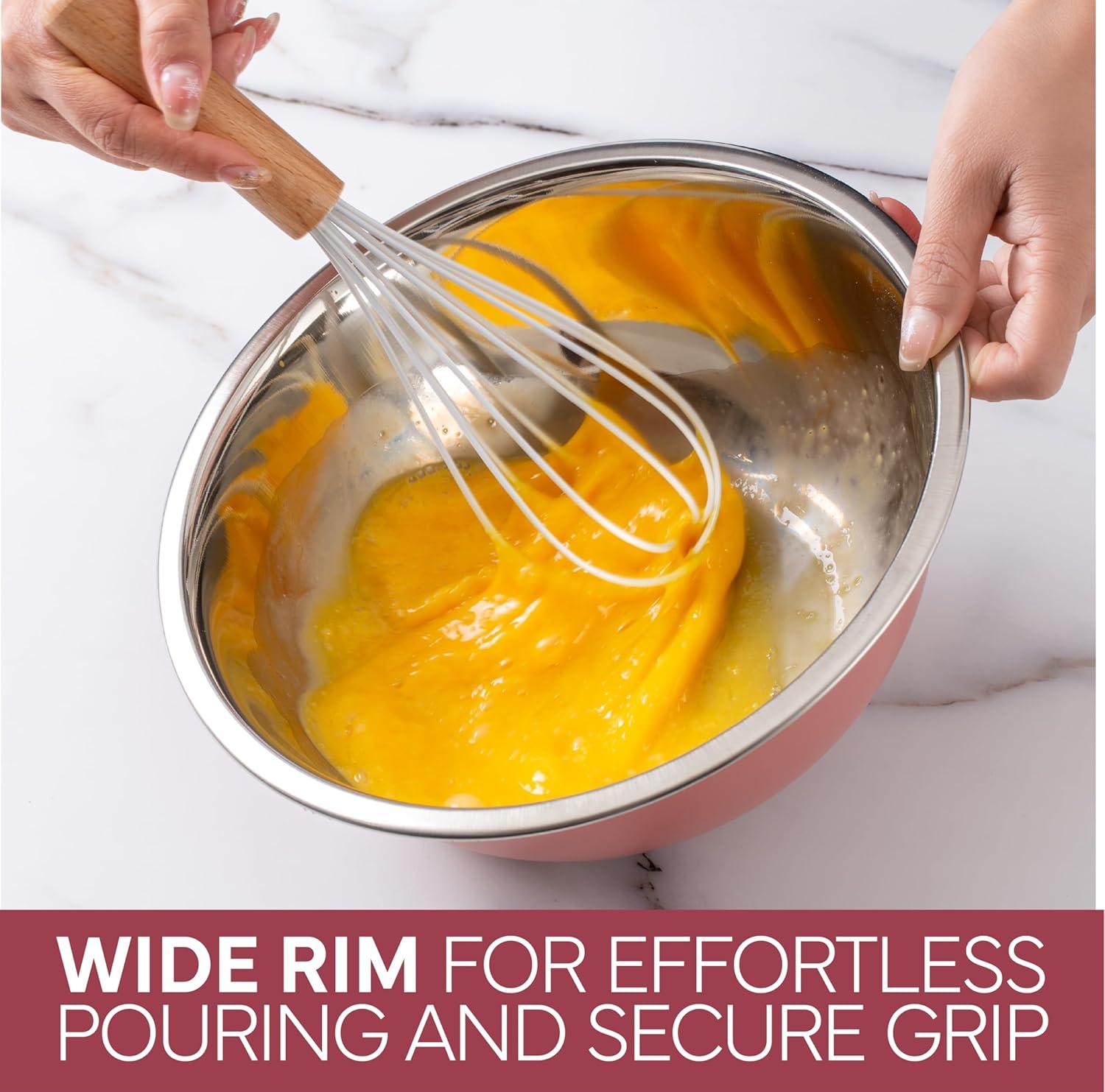 COOK WITH COLOR Stainless Steel Mixing Bowls Set with Lids – Nesting Bowls with Non-Slip Bottom, Black, 12 Pieces(Rose)